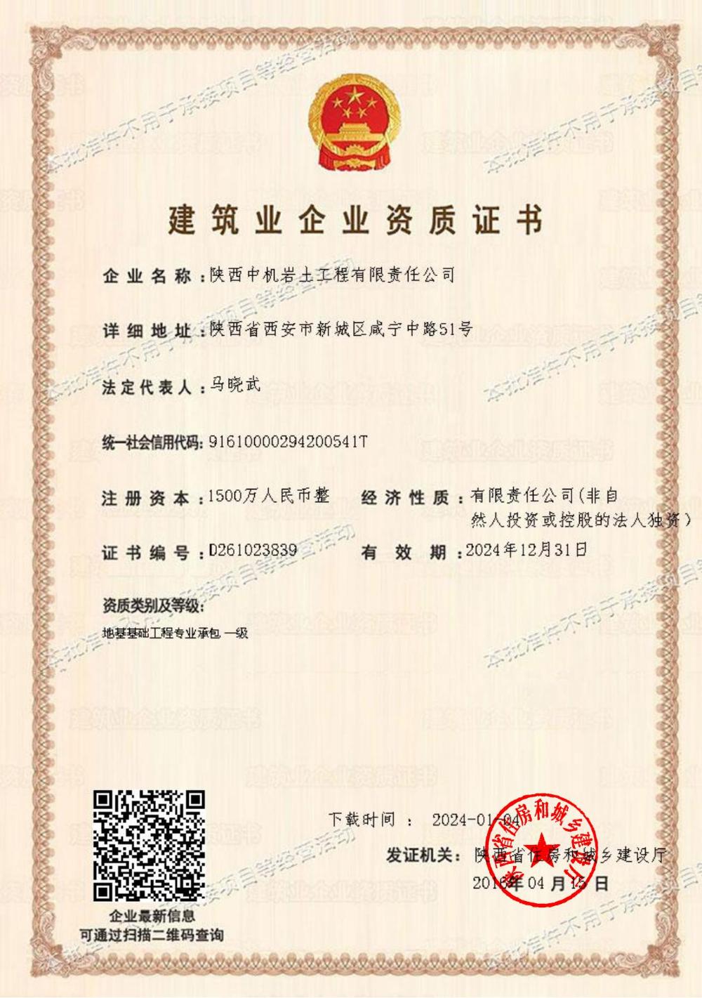 您好,欢迎光临陕西中机岩土工程有限责任公司官方网站!