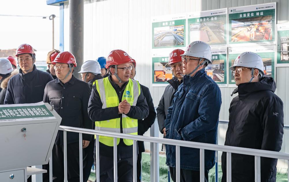 宋胜利一行重点察看了我司钢筋笼全自动智能化生产线作业情况。该生产线通过运用数字化控制技术,集成先进的大数据分析、人工智能算法以及机器人技术,实现了生产过程全自动化,大幅提高钢筋笼制作效率和质量,提升现场施工管理水平,为项目顺利实施提供了有力保障。宋胜利在调研检查过程中肯定了我司项目团队在精细化管理、项目进度控制、工程技术创新等方面做出的努力。