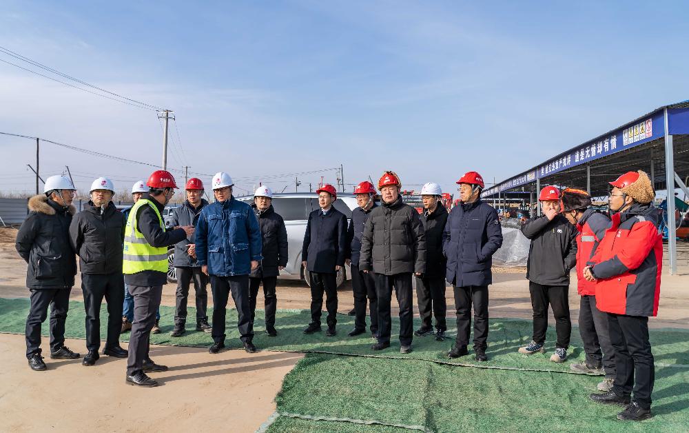 1月10日,国家电网有限公司特高压事业部副主任宋胜利在我司承担的宝塔山+800千伏换流站工程桩基B包项目开展调研检查及慰问活动,机勘院党委书记、董事长邵雪奎带队在现场接待和陪同。