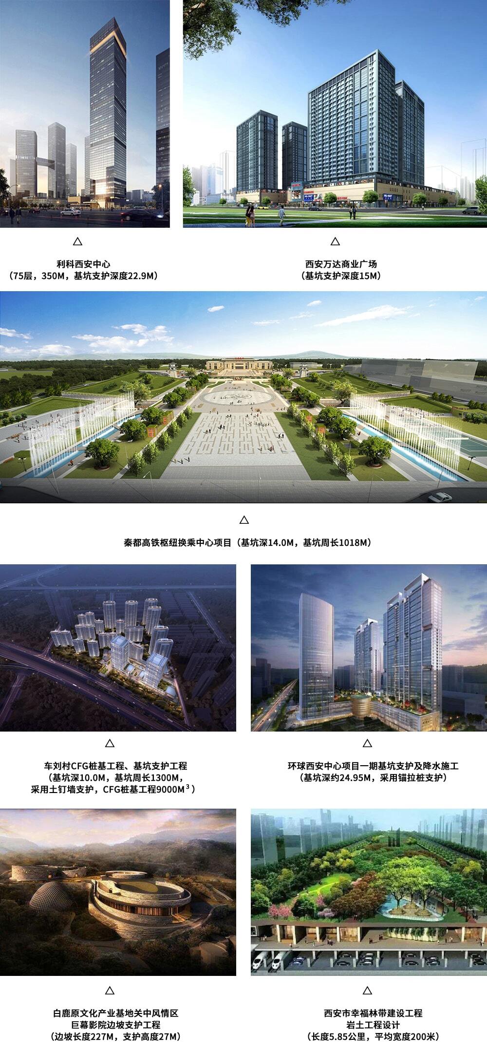 我公司在基坑支护设计与施工方面拥有较强的技术实力,承接了一大批重点工程的基坑支护设计与施工,其中包括西安地铁一号线、二号线及三号线项目、上海绿地集团西安双子塔深基坑项目、宝鸡东岭国金中心超高层支护桩基工程、榆林高新区总部基地超高层支护工程、中铁一局科技培训中心、西安万达商业广场、汉阳陵帝陵外葬坑等工程,并拥有多项工程荣获国家级省部级优秀工程奖。在施工中,我们始终坚持精益求精,精心组织、科学管理,为业主奉献精品工程。